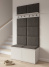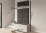 Zostava nábytku IBIZA so sadou čalúnených panelov v minimalistickom dizajne sa bude skvele hodiť do predsiene ako jedinečná a funkčná šatníková skriňa.