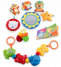 Bohatá sada hračiek rozvíja motorické a manuálne zručnosti. Hračky rôznych tvarov a farieb majú ďalšie funkcie - jednotlivé prvky pri dotyku šuštia, vrčí a hrkajú. Okrem toho je na žltom kruhu pripevnené hryzátko vo forme gumových závesov. Sada má navyše bezpečné a flexibilné zrkadlo. Keď ho dieťa uchopí, môžete ich rýchlo odpojiť.