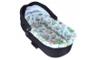 Vložka má po stranách gumičku a zapínanie na bokoch, vďaka čomu je univerzálny a hodí sa pre väčšinu kočíkov.