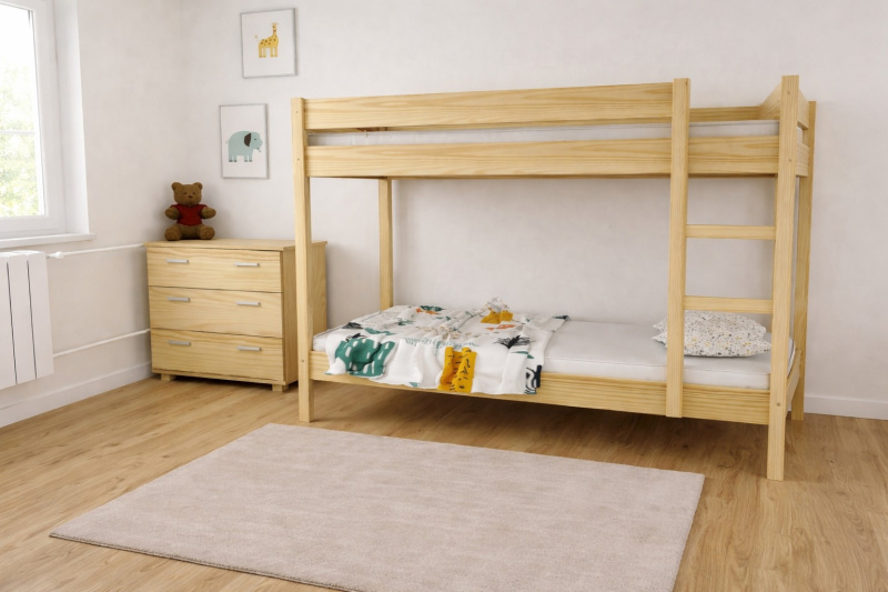 Táto posteľ osloví všetkých, ktorí ocenia vkusný minimalistický vzhľad. Je to perfektné riešenie pre súrodencov, ktorí zdieľajú izbu, deťom zaručia pohodlný odpočinok a zároveň zaberú relatívne malú plochu. Dve priestranné miesta na spanie a veľká vzdialenosť medzi roštmi dávajú používateľom pocit vlastného priestoru, vďaka čomu prítomnosť ďalšej osoby nespôsobuje nepohodlie. Posteľ je vybavená širokým rebríkom a ochranným zábradlím, ktoré účinne chránia jej hornú časť.
