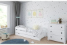 Posteľ je navrhnutá tak, aby bola praktická, funkčná a bezpečná – má dve bočné ochrany a nízku polohu matraca, čo poskytuje vášmu dieťaťu maximálne bezpečie počas spánku.