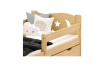 Posteľ Bohoušek pre väčšie deti s ochrannou bariérky, ktorá chráni dieťa pred pádom. Súčasťou postele je bariérky montovateľná na ľubovoľnú stranu. Bariérky je demontovateľná. Táto posteľ je vyrobená z masívneho borovicového dreva. Súčasťou tejto postieľky sú z bezpečnostných dôvodov zaoblené rohy. Posteľ je lakovaná nezávadným ekologickým lakom, vhodným pre styk s dieťaťom. Súčasťou je pevný a stabilný rošt. Znížený prah, umožňuje používať túto posteľ aj pre najmenšie deti. Nosnosť tejto postele je 90 kg.