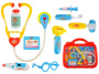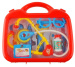 Sada sa skladá z 10 prvkov, ktoré sú umiestnené v šikovnom, ľahkom a malom kufríku s madlom, uzatváraným dvoma hornými západkami. Kufor má vpredu plastový kryt, cez ktorý vidíte obsah sady, zadná strana je krytá. Vďaka _ detský kufor bez problému hračku môže vziať do škôlky, ku kamarátovi, na záhradu, na prechádzku, na výlet alebo na ďalší výlet. Kreatívna hra je možná vďaka imitáciám lekárskych prístrojov, ako sú: stetoskop, neurologické kladivko, injekčná striekačka, ORL otoskop, teplomer, zubné zrkadlo, okuliare bez šošoviek, fľaštička s twist off uzáverom a klipsom. na odznak s miestom na zadanie mena a nalepenie malej fotografie.