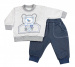 Moderná dojčenská 2 dielna súprava mikiny a nohavíc. Mikina je vybavená dvoma cvočkami na ramienku pre ľahké obliekanie a obrázkom na prednej strane. Nohavice v páse na gumičky, na rýchle prebaľovanie.