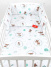 Súprava do postieľky 3-dielna Sada obsahuje: obliečky perinky 120/90 cm obliečky na vankúš 60/40 cm ochranný mantinel do postieľky v dĺžke 180 cm, výškou 30 cm (mantinel má šnúrky na pripevnenie k tyčiam postieľky) Celý popis produktu