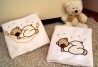 Detská deka do kočíka s výšivkou je vyrobená z kvalitného, mäkkého a teplého fleecu, ktorý spĺňa certifikát OKO TEX Standard 100 Nr 58936 / IW. Deka je obšitá ozdobnou niťou, ktorá zodpovedá farbe výšivky, ktorá je uprostred hornej Celý popis produktu