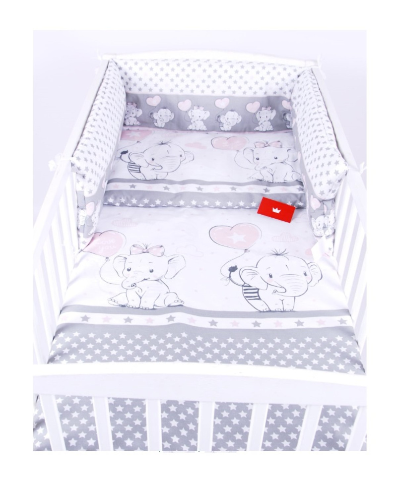 Detské obliečky do postieľky 100/135 cm - slonítka / ružová