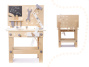 Každý majster potrebuje dielňu s náradím. Krásna, veľká, drevená súprava bude splneným snom každého malého majstra. Skrutkovače, kladivo, skrutky, ozubené kolesá – to všetko sú prvky nevyhnutné v profesionálnej dielni. Malá kriedová tabuľa bude ďalším lákadlom a umožní vám napísať akčný plán alebo nakresliť projekt.