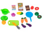 Nevyhnutný bude nákupný košík, ktorý uľahčí vyplnenie dlhého nákupného zoznamu. Ovocie a zelenina obsiahnuté v sade spestrí zábavu a nahradia skutočné potravinárske produkty. Možnosť krájania zeleniny a ovocia, ktoré boli spojené suchým zipsom, bude pre dieťa veľkou zábavou.