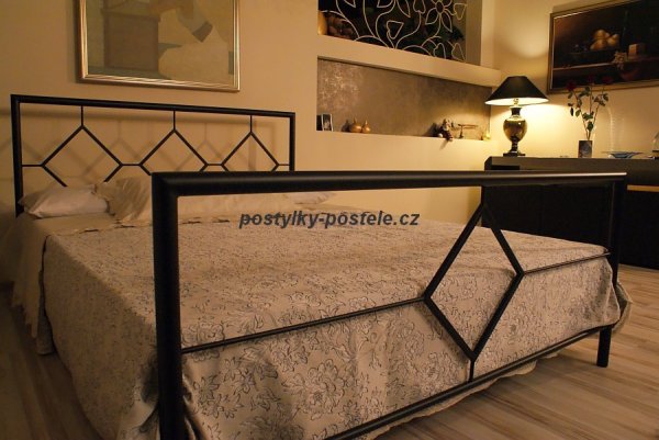 Kovové - kované postele sú vyrábané z masívnej ocele, poctivou ručnou prácou. Ručná výroba kovových postelí zaisťuje vysokú kvalitu remeselného spracovania. Všetko pôsobí veľmi elegantne a esteticky. Často sú kovové postele kombinované s drevenými doplnkami. Kovové - kované postele ponúkame v štandardných rozmeroch. V ponuke je osem základných farieb (na vyžiadanie zašleme farebné možnosti prevedenia postelí), patina zlatá alebo strieborná je v príplatku 10%. Patina je nanášaná ručne. U patiny ako zlaté a strieborné dosiahneme reálneho antického vzhľadu. Kovové postele sú dodávané v rozloženom stave v kartónovom obale. Postele sú pevné a stabilné. Rošty sú dodávané v komplete k tejto zaujímavej posteli, sú vyrobené z bukových lamiel. Vo veľkostiach 160/200 cm a 180/200 cm, ponúkame v cene tri oporné nohy v strede rámu postele. Možnosť kombinácií s nočnými stolíkmi, toaletnými stolíky, atď