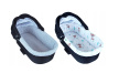 Vložka má po stranách gumičku a zapínanie na bokoch, vďaka čomu je univerzálny a hodí sa pre väčšinu kočíkov.