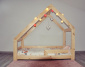 Posteľ domeček pre väčšie deti s ochrannou bariérky, ktorá chráni dieťa pred pádom. Táto posteľ je vyrobená z masívneho borovicového dreva. Súčasťou tejto postieľky je rošt. Posteľ je lakovaná nezávadným ekologickým lakom, vhodným pre styk s dieťaťom. Súčasťou je pevný a stabilný rošt. Znížený prah, umožňuje používať túto posteľ aj pre najmenšie deti. Nosnosť tejto postele je 80 kg. Síla masívu 2,5 cm. Dekorácie nie sú súčasťou.