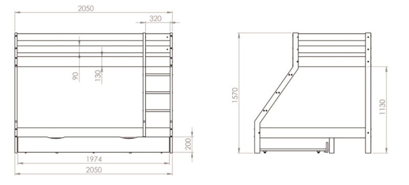 Táto zaujímavá poschodová posteľ je vyrobená z masívu borovice a slúži ako posteľ pre dve až tri osoby. Horná posteľ má rozmer 90x200 cm a spodnú posteľ 140x200 cm. Sila použitého masívu, zaisťuje pevnú a stabilnú konštrukciu. Celý popis produktu