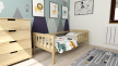 Posteľ pre väčšie deti s ochrannou bariérky, ktorá chráni dieťa pred pádom. Súčasťou postele je bariérky variabilná na ľubovoľnú stranu. Táto posteľ je vyrobená z masívneho borovicového dreva. Súčasťou tejto postieľky sú z bezpečnostných dôvodov zaoblené rohy. Posteľ je lakovaná nezávadným ekologickým lakom, vhodným pre styk s dieťaťom. Súčasťou je pevný a stabilný rošt. Znížený prah, umožňuje používať túto posteľ aj pre najmenšie deti. Nosnosť tejto postele je 80 kg.