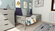 Posteľ pre väčšie deti s ochrannou bariérky, ktorá chráni dieťa pred pádom. Súčasťou postele je bariérky variabilná na ľubovoľnú stranu. Táto posteľ je vyrobená z masívneho borovicového dreva. Súčasťou tejto postieľky sú z bezpečnostných dôvodov zaoblené rohy. Posteľ je lakovaná nezávadným ekologickým lakom, vhodným pre styk s dieťaťom. Súčasťou je pevný a stabilný rošt. Znížený prah, umožňuje používať túto posteľ aj pre najmenšie deti. Nosnosť tejto postele je 80 kg.