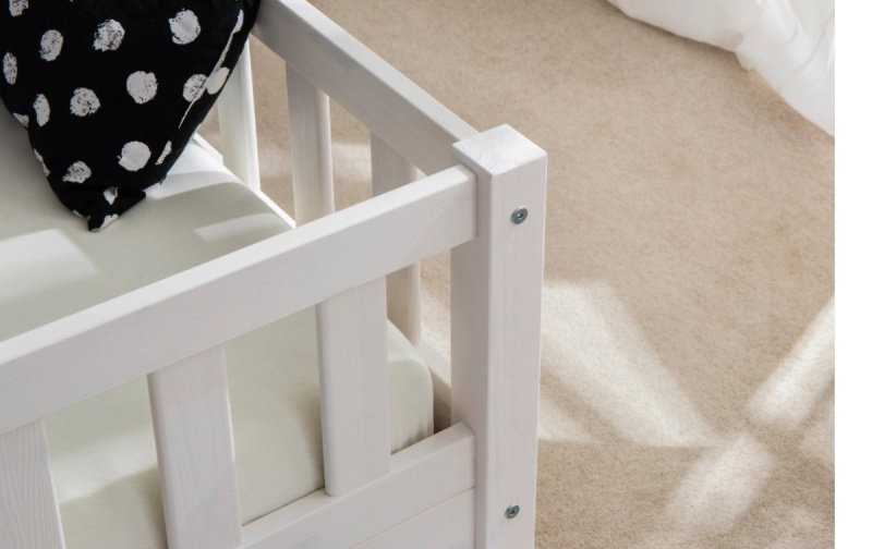 Posteľ Adele, je vyrobená z masívneho a odolného borovicového dreva a vďaka svojim zaobleným hranám ponúka maximálnu ochranu. Pre väčšiu bezpečnosť má táto posteľ obvodové ochranné bariéry a nastaviteľnú kratšiu barierku so vstupom do postele, ktorú je možné pripevniť variabilne vľavo, vpravo alebo vôbec.