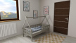 Táto posteľ je vyrobená z masívneho borovicového dreva, ktoré je pevné, odolné a príjemné na dotyk. Posteľ má tvar domčeka, ktorý vytvára útulný a bezpečný priestor na spanie i hranie. Deti si môžu domček vyzdobiť podľa svojej fantázie, napríklad závesmi, girlandami, vankúšikmi alebo plyšákmi.