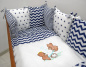 3-8. Modulárny obliečky skladajúci sa z 6 vankúšov - každý vankúš má rozmery cca 38x35 cm, vankúše sú šité v dvoch vzoroch, z každého vzoru 3 ks tvoria vankúš. Výplň je z vysokoakostných silikónových vlákien. Vankúše majú na každom okraji šité popruhy, ktoré umožňujú ich pripojenie k lôžku na akomkoľvek mieste. Takýto model chráničov je veľmi univerzálny, vankúše vkladáme podľa vlastných potrieb aj podľa vlastného uváženia farieb. Poskytujú veľmi dobrú ochranu dieťaťa pred nárazom do postieľky. Vyrobené zo 100% certifikovanej bavlny, zaisťujúce najlepšiu kvalitu a maximálne pohodlie spánku Vášho dieťaťa.