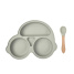 Silikónový tanier v tvare auta delený na segmenty a lyžička s drevenou rukoväťou.