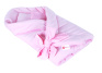 Vonkajšia vrstva zavinovačky je vyrobená z veľmi príjemného a mäkkého plyšového materiálu velvet, výplň zavinovačky je nadýchaná a mäkká hypoalergénna silikónová netkaná textília s gramážou 300 g/m2. Zapínanie je na zaviazanie mašľou, ktorá je dostatočne dlhá na úpravu (voľnejšia alebo tesnejšia). Deka je ušitá tak, aby sa pri praní nedeformovala.